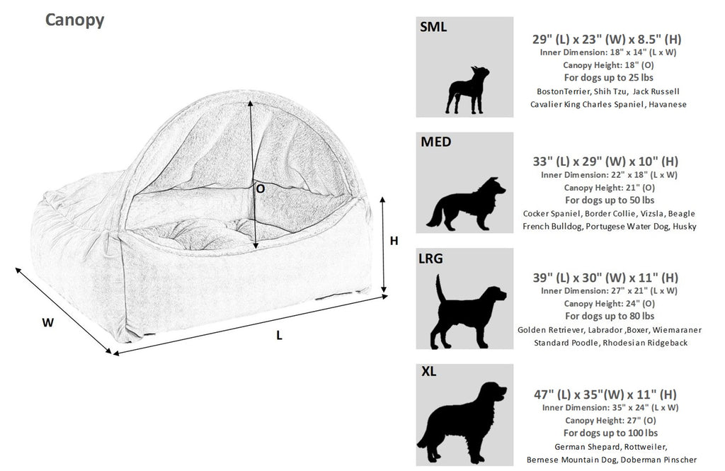 This new design takes our top selling Scoop bed to new heights! The Canopy design combines overstuffed bolsters with a luxurious faux fur blanket like covered enclosure. The ultimate in comfort and security pets love. The removable tufted cushion can be used as a crate or travel mat. The circular tufting creates an elegant upholstered look while ensuring fiber does not clump or shift when washing.